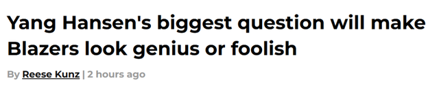 开拓者媒体Rip City Project认为从杨瀚森的零星亮眼表现来看,海金的乐观并非不能理解,但这份期待建立在一个或许永远无法实现的理想假设之上,也让开拓者的这次选秀策略暗藏巨大风险。